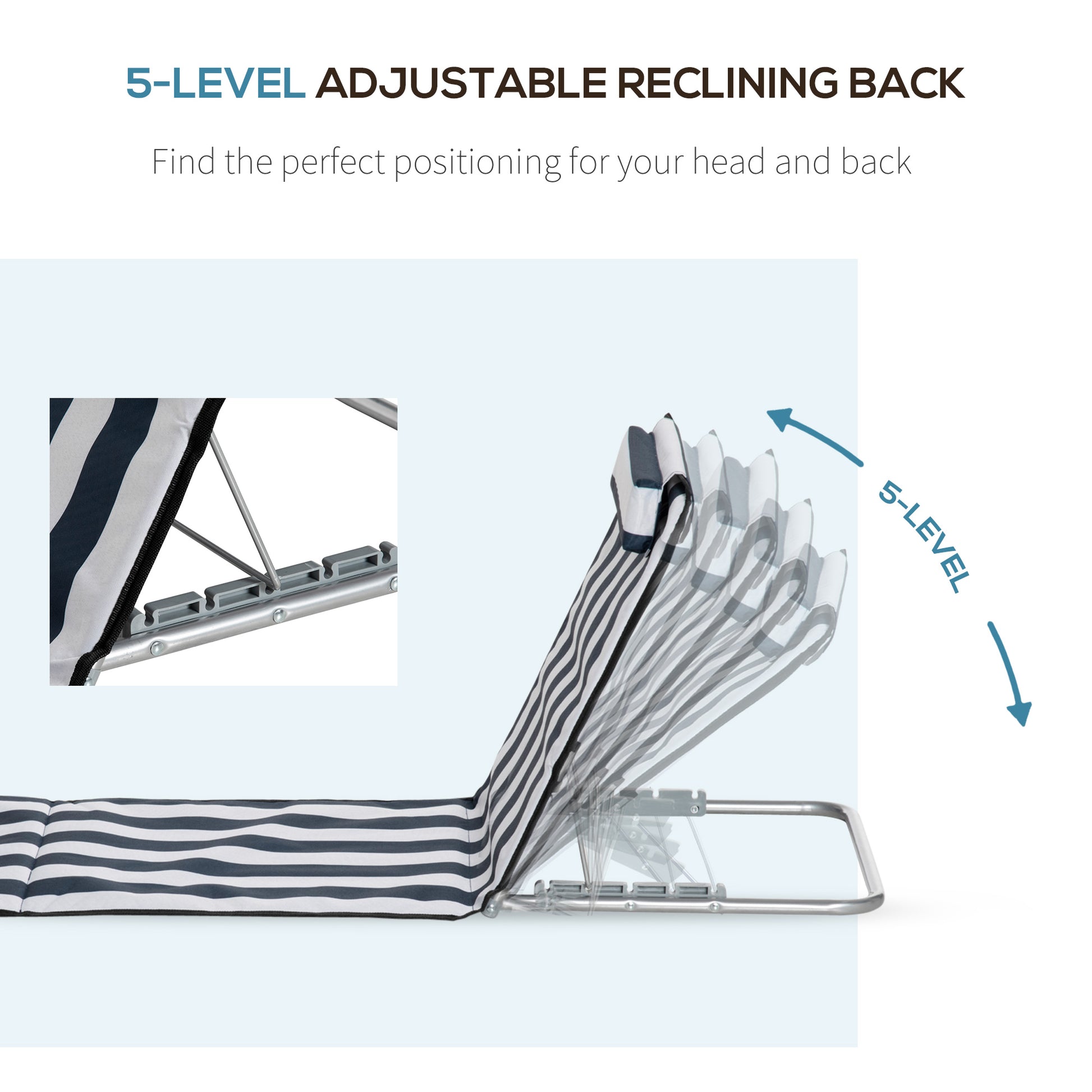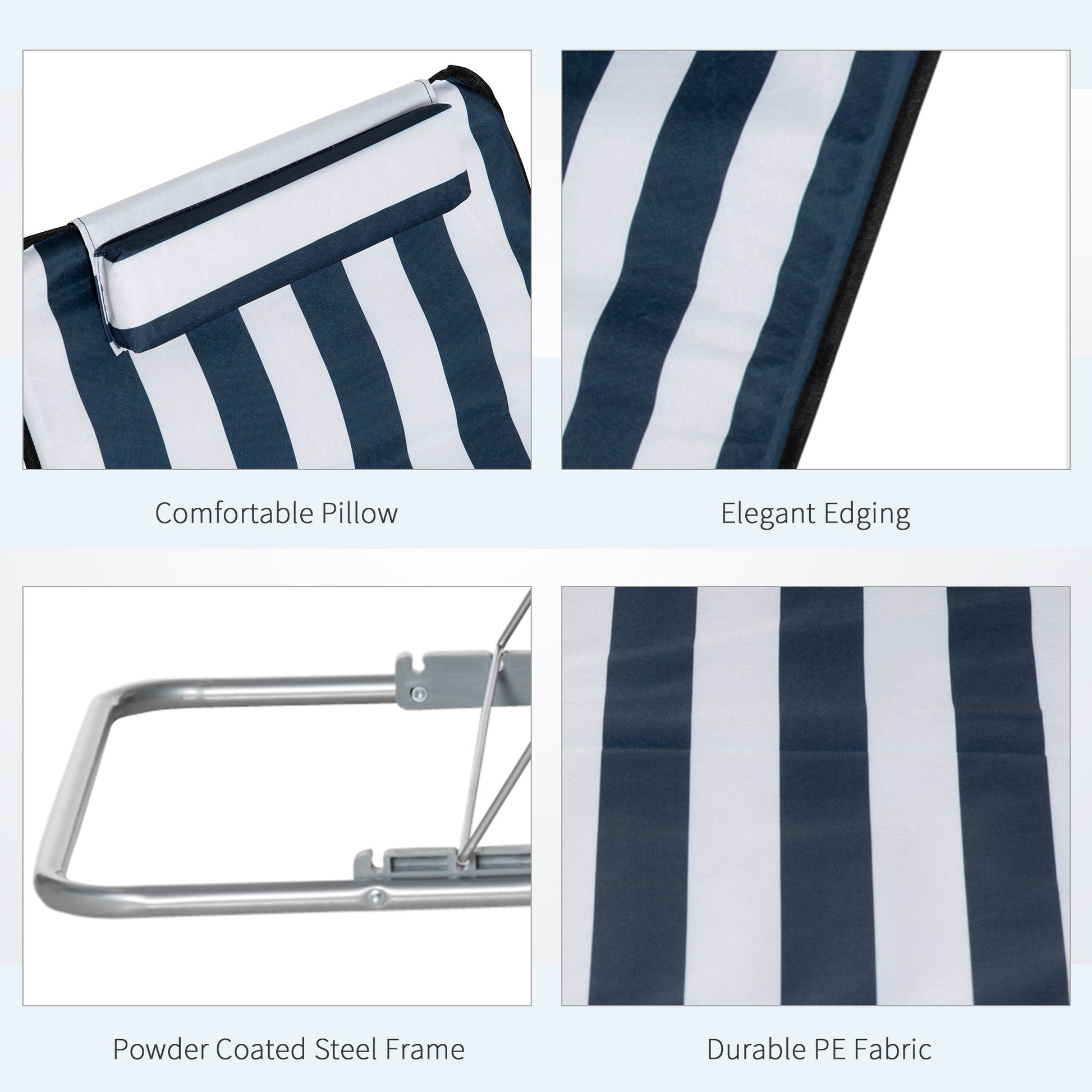 Set of 2 Foldable Garden Beach Chair Mat Lightweight Outdoor Sun Lounger Seats Adjustable Back Metal Frame PE Fabric Head Pillow, Blue