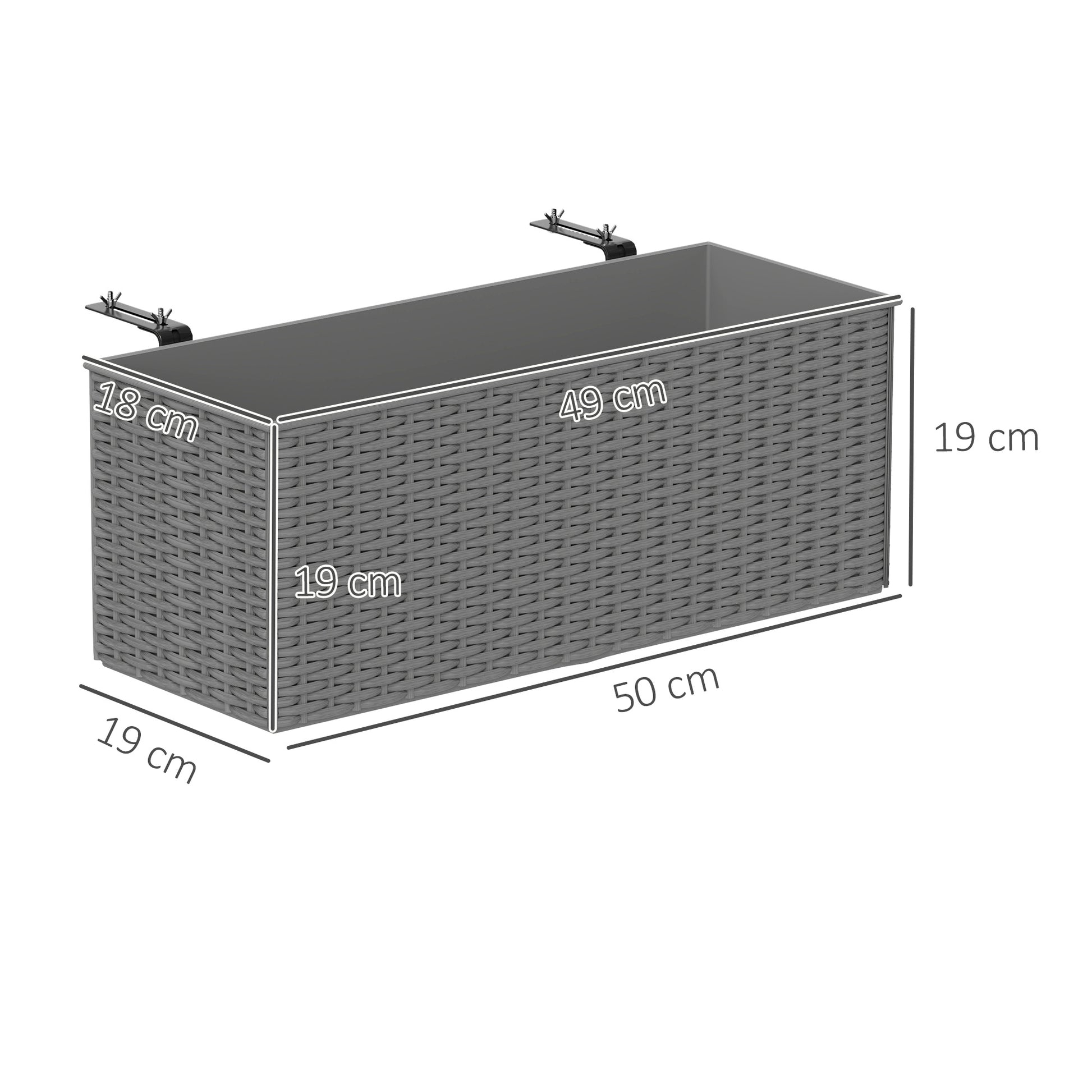 Set of 2 Hanging Flower Boxes, 50 cm Long, Rattan Look, Grey