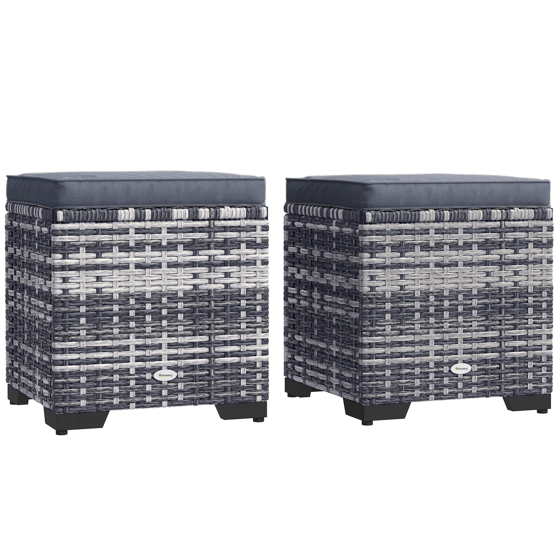 Discover the charm of Outsunny's rattan garden stool, blending style and functionality. Its lift-off lids reveal lots of storage for all your bits and bobs, from books to gardening tools. Enjoy upgraded comfort with thick, cushy seats that easily zip off for cleaning. This versatile piece serves wonderfully as a small footstool or extra seating, crafted to endure the elements with a robust steel frame.Specifications