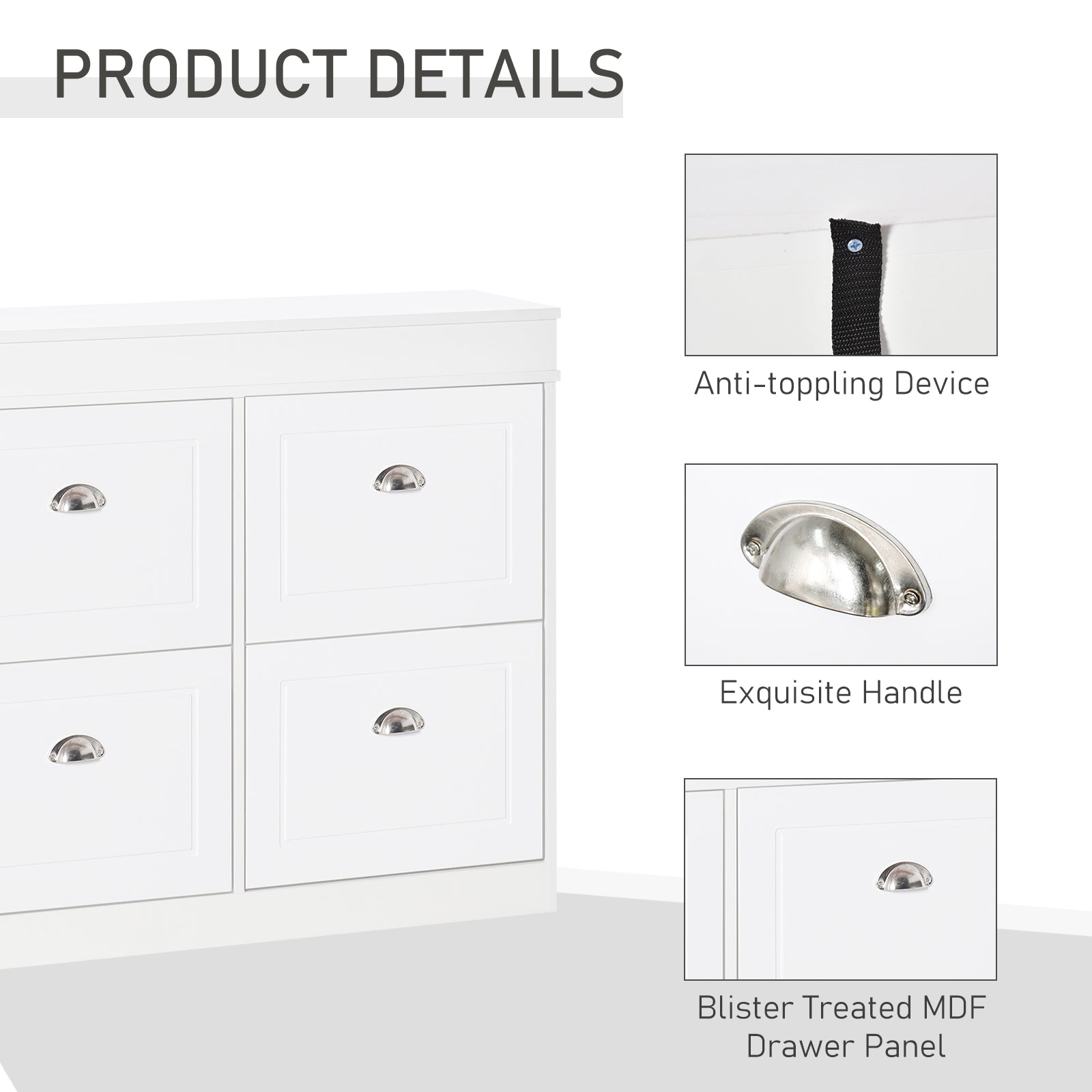 - AMPLE STORAGE SPACE: Features 4 drawers, each drawer with 2 compartments, this shoe cabinet has a total capacity of 32 pairs for your shoes. (The largest size is UK 8/ EU43)