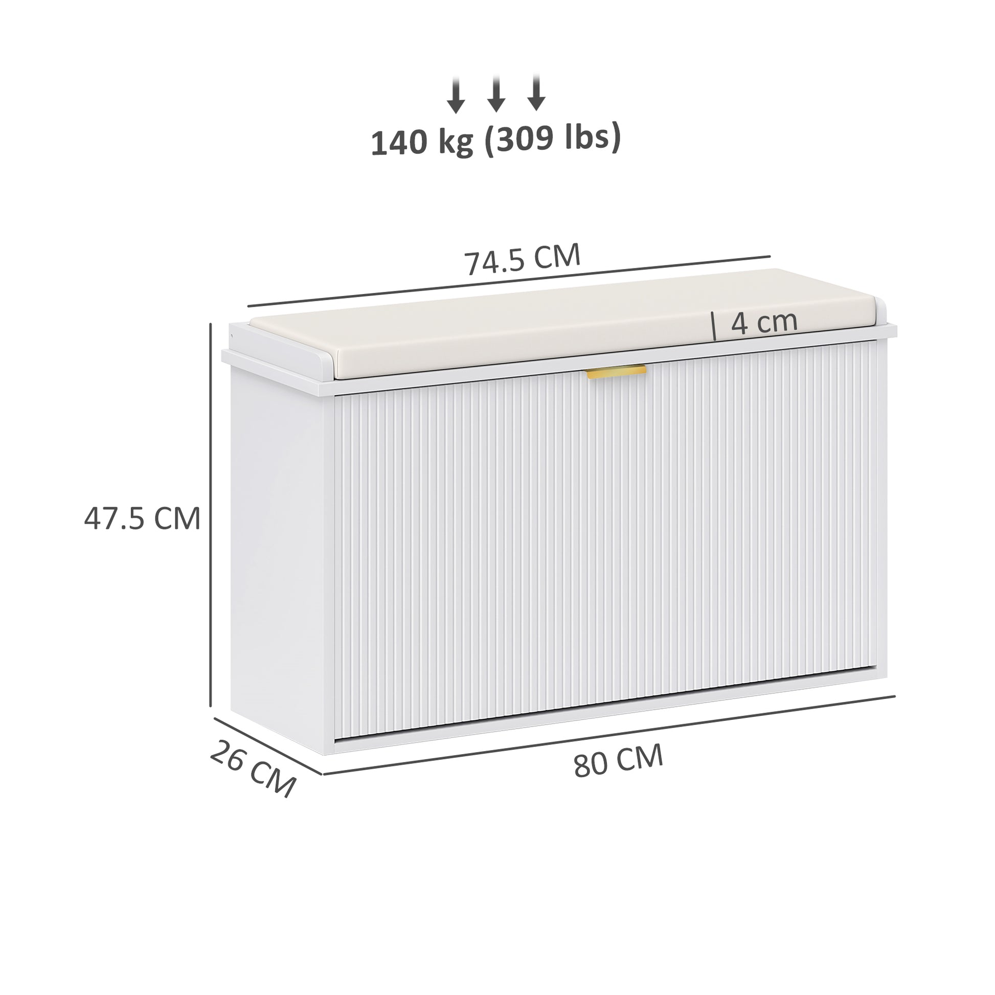 Shoe Storage Bench with Cushion and Flip-Drawer 80x26x47.5cm White
