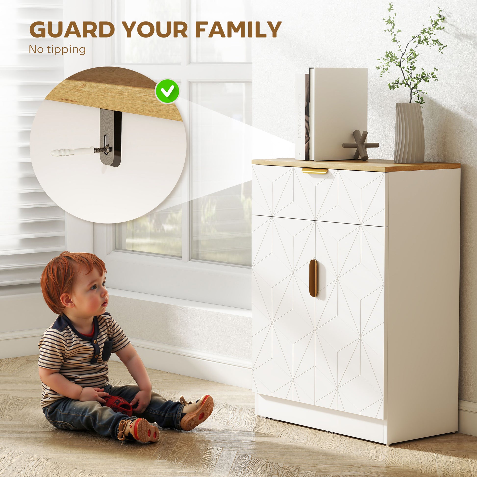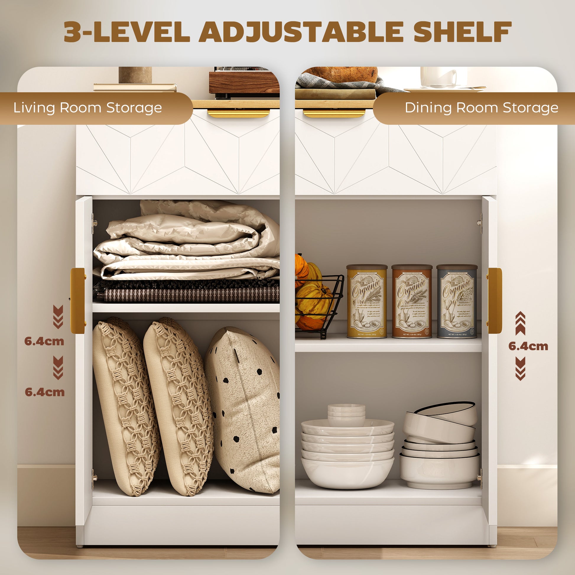 Sideboard Storage Cupboard with Drawer for Living Room Entryway White
