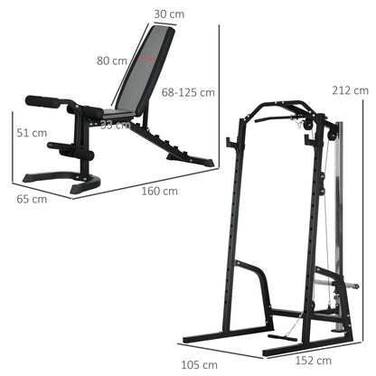 Smith Machine Power Rack with Pull Up Bar, Lat Pull Down System