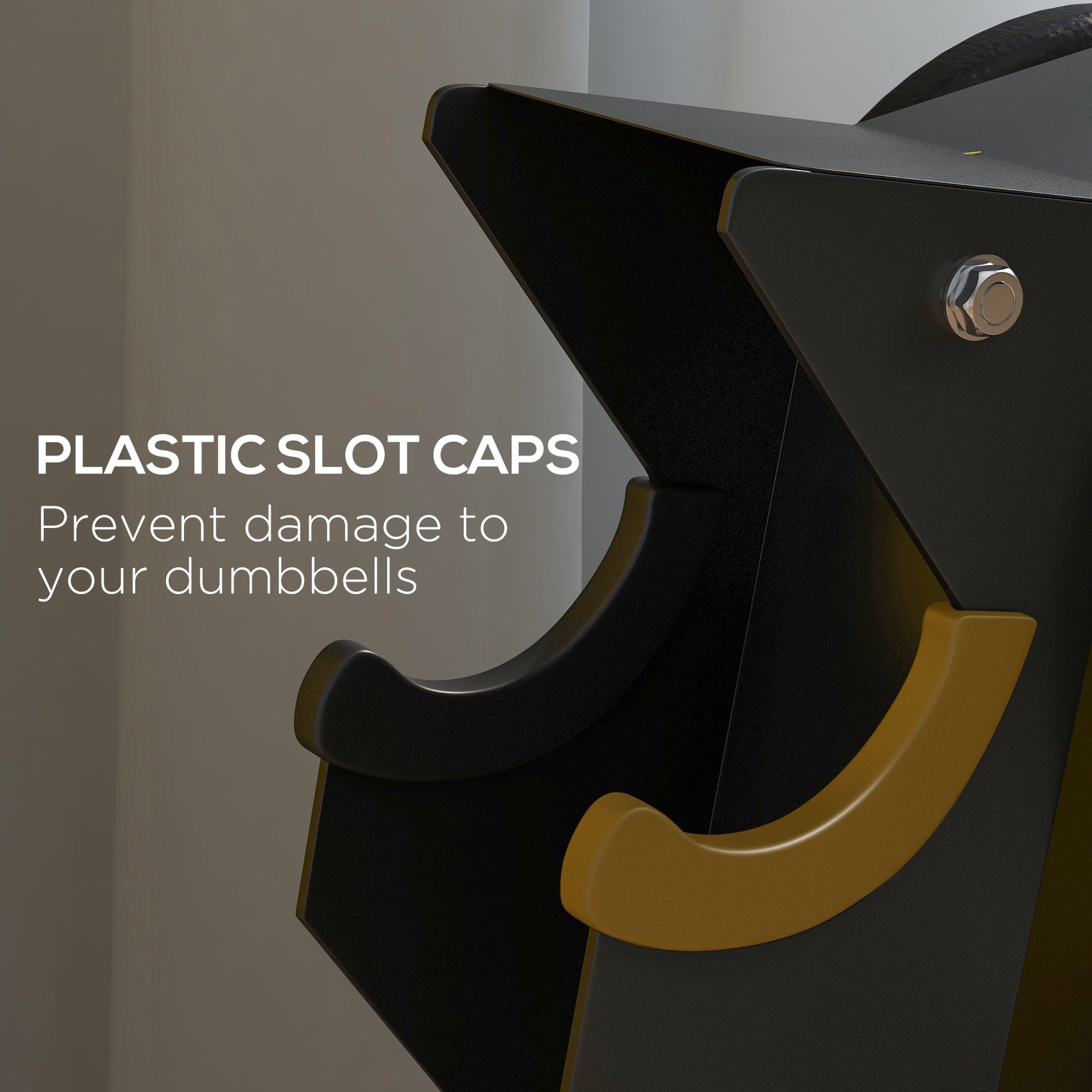 Organise your workout space with our SPORTNOW dumbbell rack stand. It includes 10 racks for five pairs of dumbbells, so they aren't scattered across your floor. Made from solid and durable steel, its wide feet keep the rack balanced, ensuring weights don't fall off – you'll have a secure and orderly workout zone. A compact piece that doesn't need much space, it'll fit into the corner, giving you plenty of room to get in a proper and fulfilling exercise.