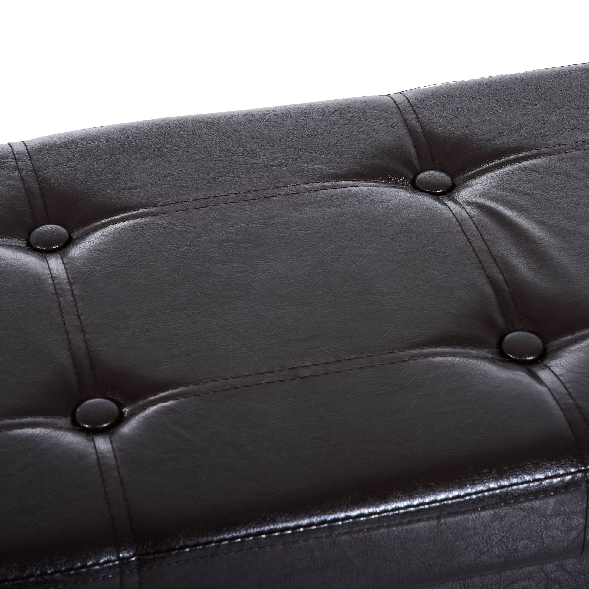 This HOMCOM collapsible ottoman made from faux leather is a great addition to your storage needs, the top has tufted design which is elegant and stylish. With a wooden frame construction to give it strength and stability. It can be used as a footstool and storage 2 in 1 and would compliment any room in your home. It has a foldable design so when not in use it can be stored away.
