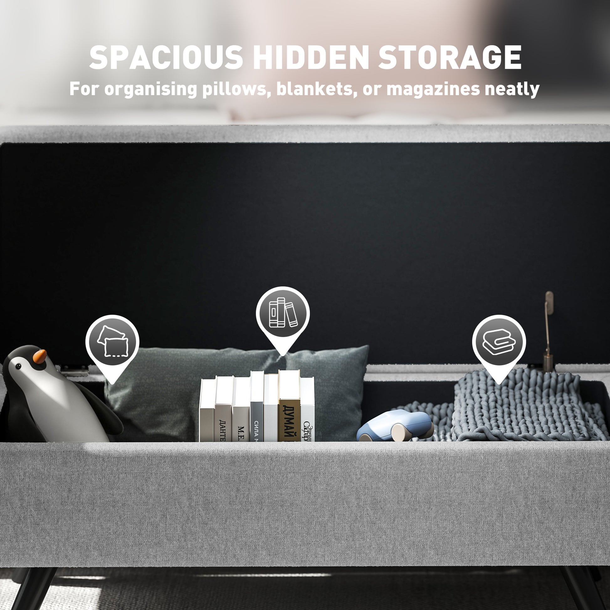 Storage Ottoman with Armrest, Upholstered Linen Storage Bench