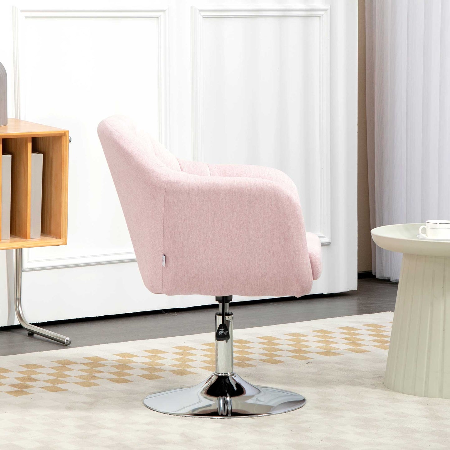 Stylish Retro Linen Swivel Tub Chair Steel Frame Cushion Seat Pink