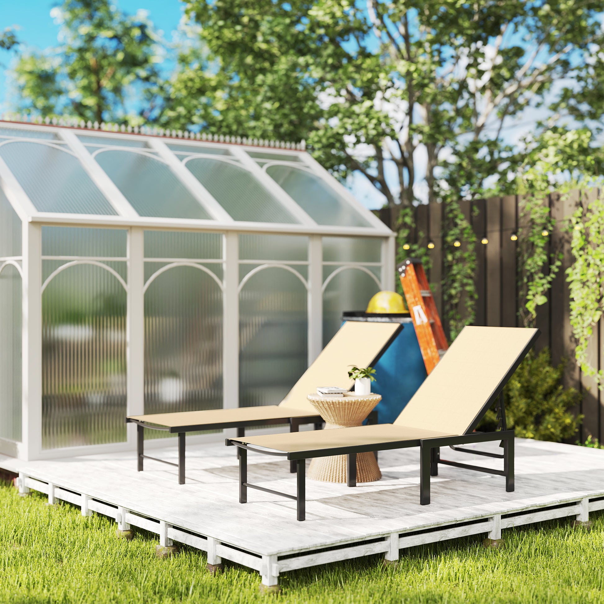 Sun Loungers Set of 2, 5-Level Reclining Sunbeds, Khaki