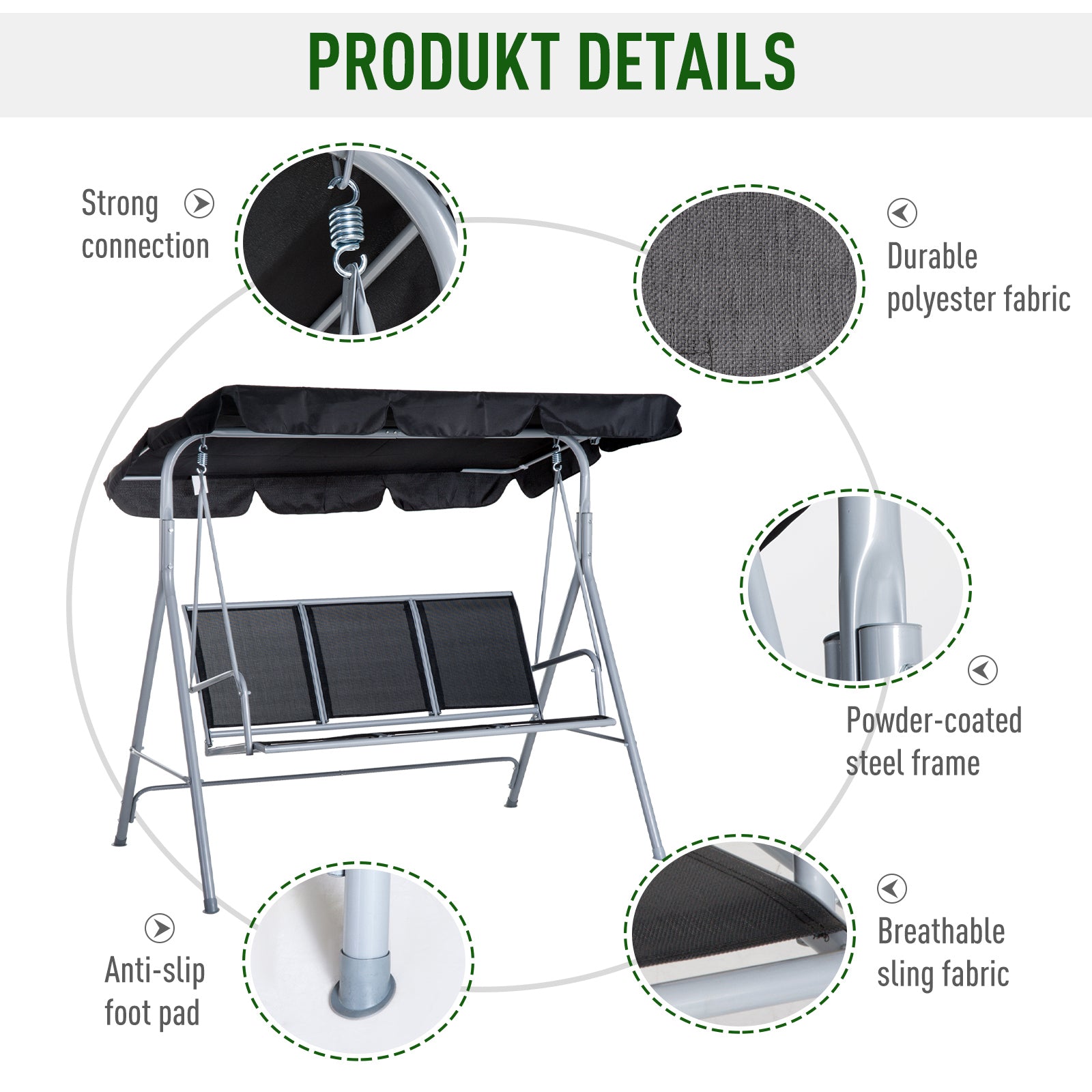 3 Seater Patio Swing Chair Garden Hammock Bench Rock Shelter Shade Metal Black