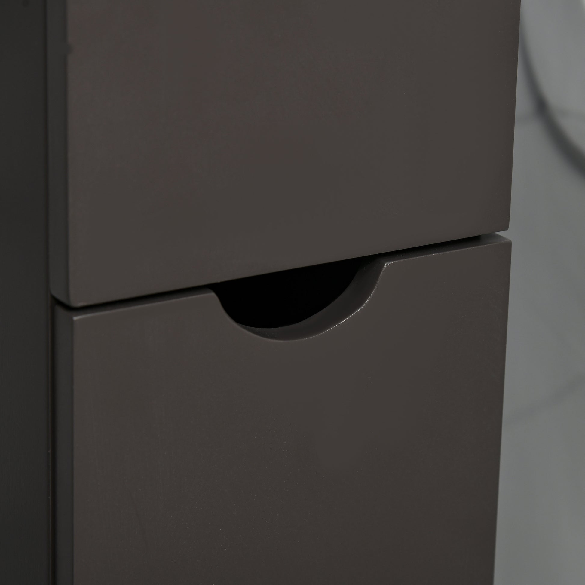 Tall, narrow and stylish - what's not to love about this bathroom cabinet. Providing handy storage in a slim design, this piece is suitable for smaller spaces - bringing you storage into even the smallest spots. Comes with two top shelves (great for towels), small cupboard and two bottom drawers (great for hygiene and cleaning products). Comes with anti-tipping straps to attach to a wall for safety.Specifications