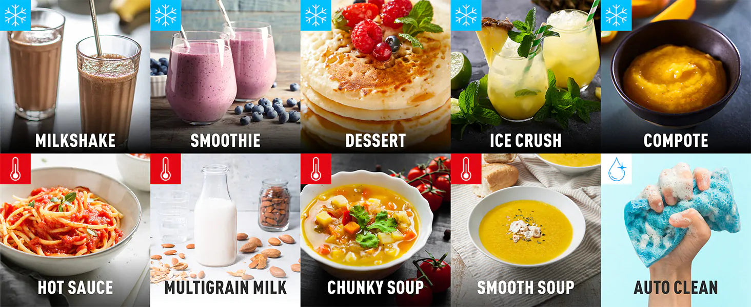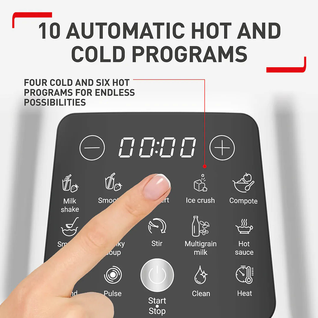 • Do more: Go manual or choose from 10 automatic programs (four cold and six hot). Blend shakes and desserts, cook and blend jams, soups, stews, sauces – you can even make your own multigrain milk.