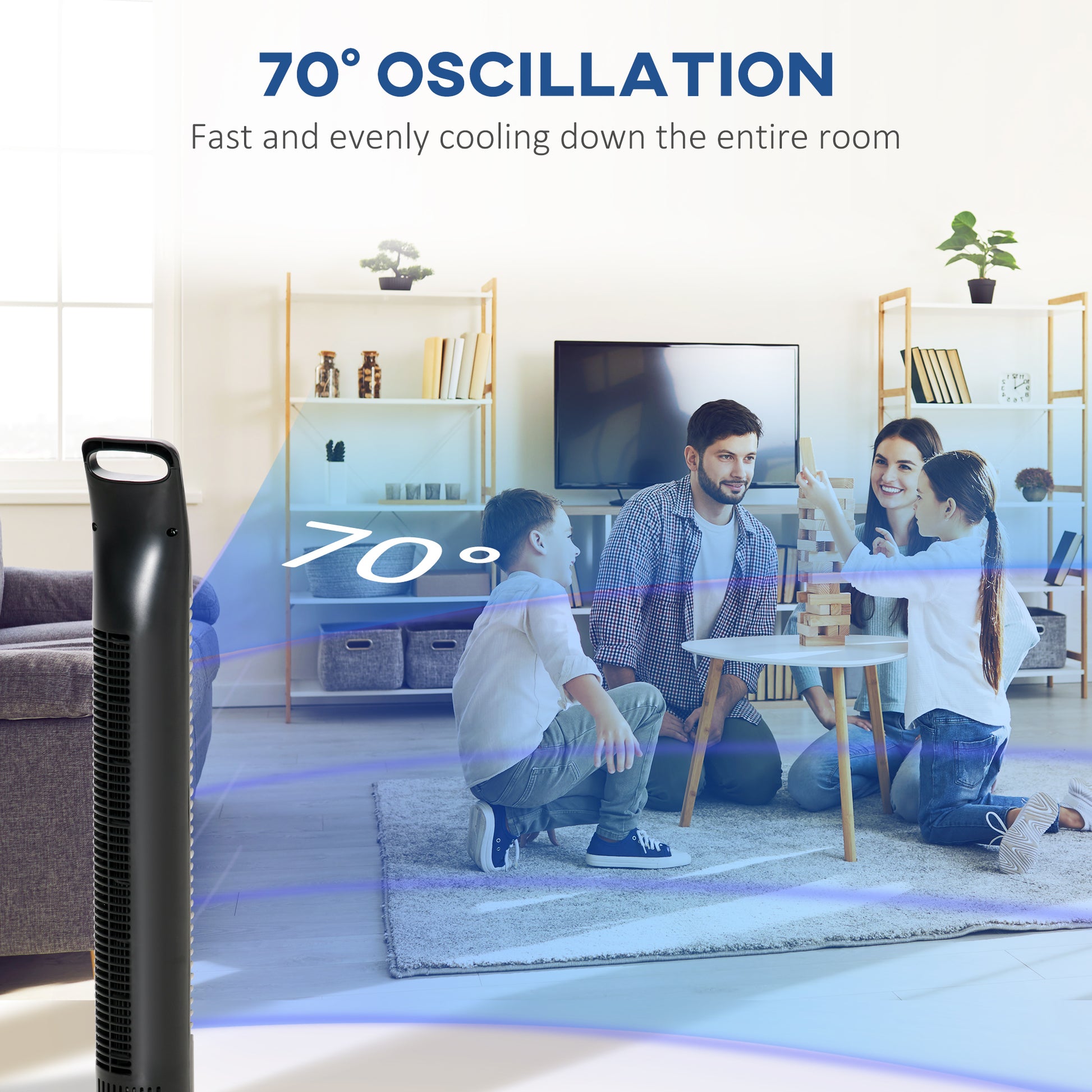 Tower Fan Oscillating 3 Speeds 3 Winds 40W w/ Remote Control Timer Moving Head Quiet Operation Home Office Bedroom Black - 78.5H cm
