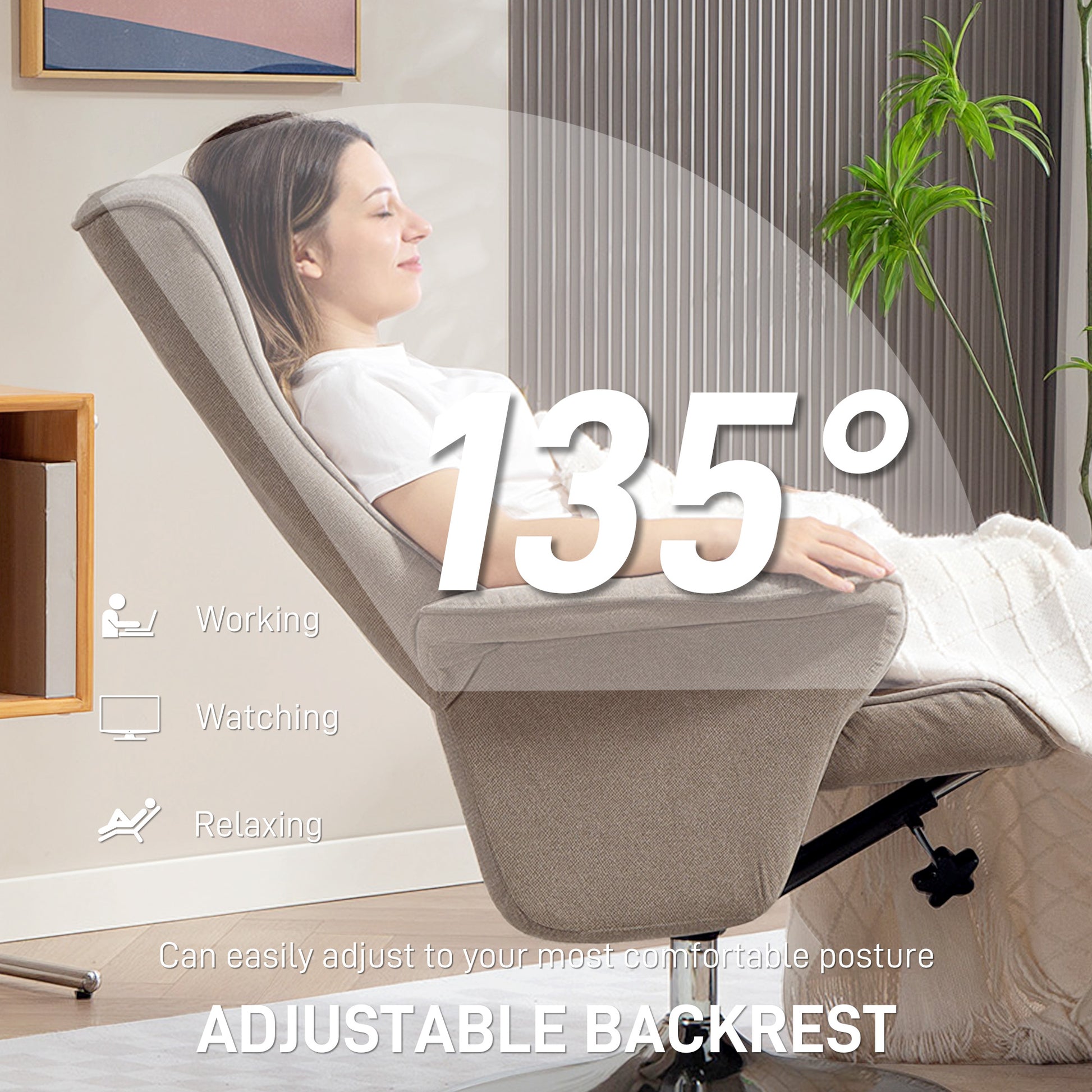 Upholstered Swivel Recliner Armchair with Ottoman, Beige