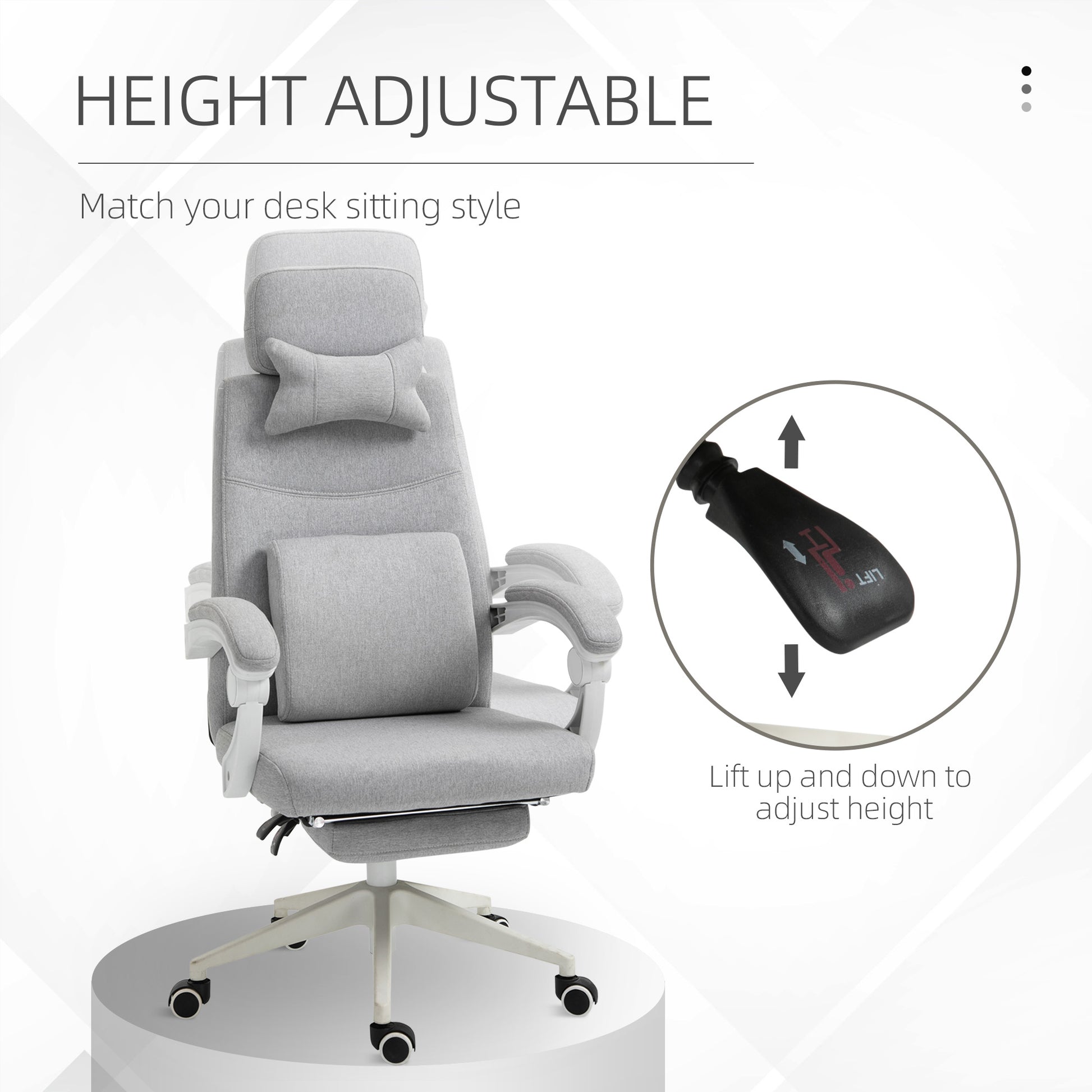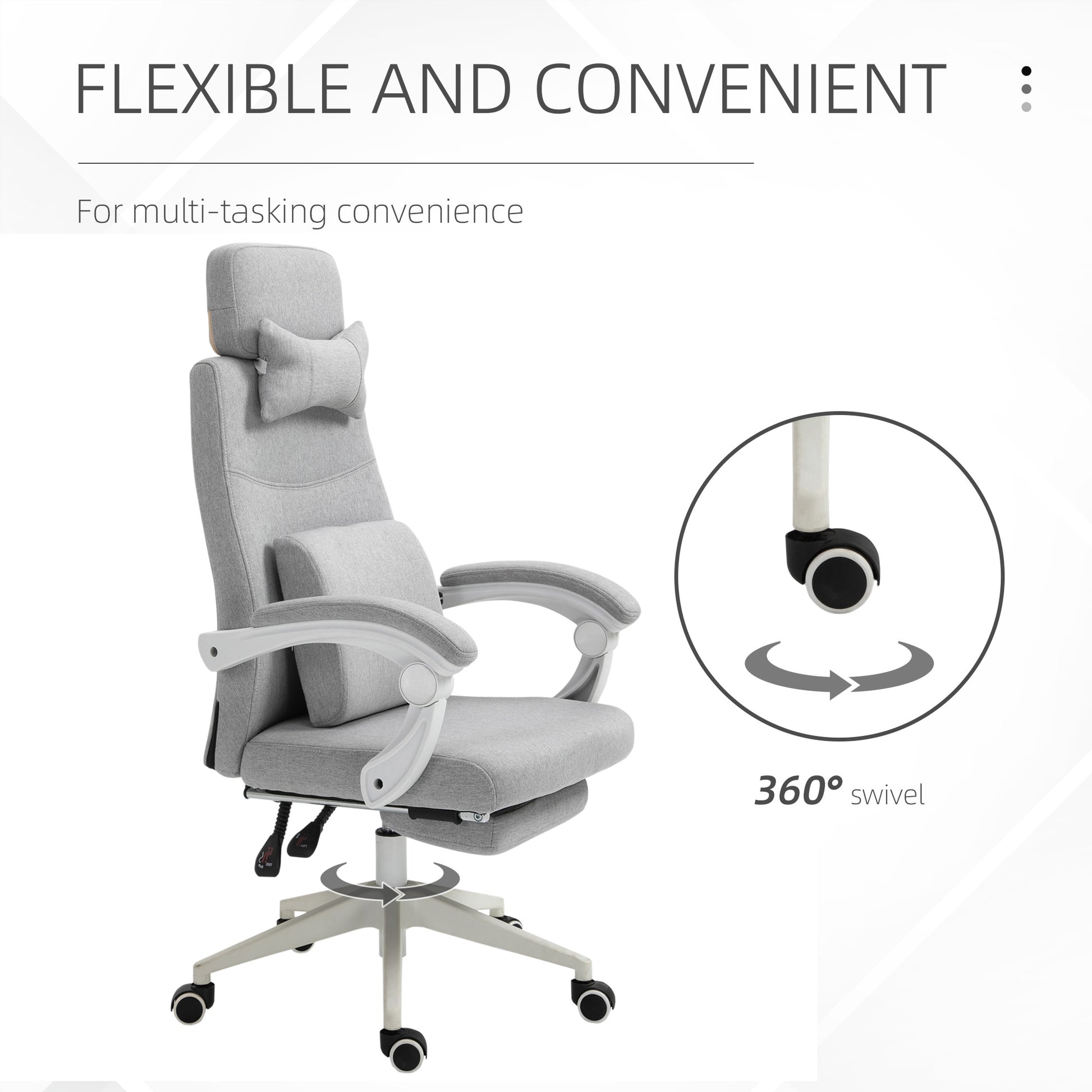Home Office Chair w/ Manual Footrest Recliner Padded Modern Adjustable Swivel Seat w/ 2 Pillows Armrest Ergonomic Grey