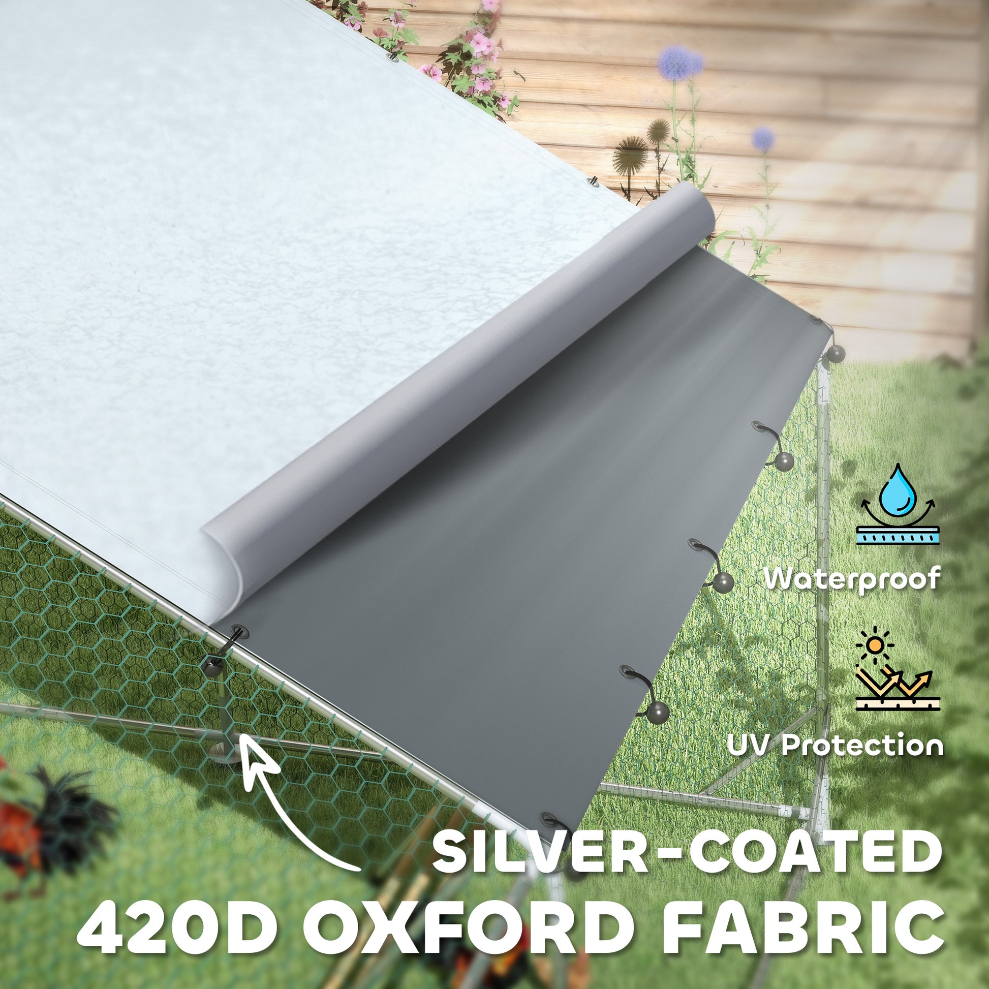 Transform your garden with the Large Chicken Run, a sprawling 12m² haven fit for 12-18 chickens. Featuring galvanised steel and UV-resistant Oxford fabric, it ensures a safe and comfortable shelter. The innovative door with a built-in feeding access lets you care for your feathered friends without a fuss, while the included feeder and perch create a complete chicken coop setup.Specifications