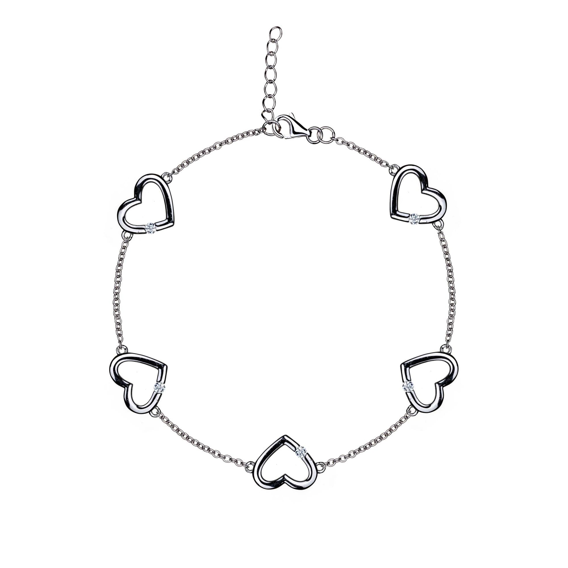 Show some Love with this beautiful heart bracelet! Each heart has been created Solid using Sterling Silver and plated with Rhodium for strength and lustre, these beautiful hearts each hold a dainty cubic Zirconia channel set to catch the light and add a subtle hint of sparkle.