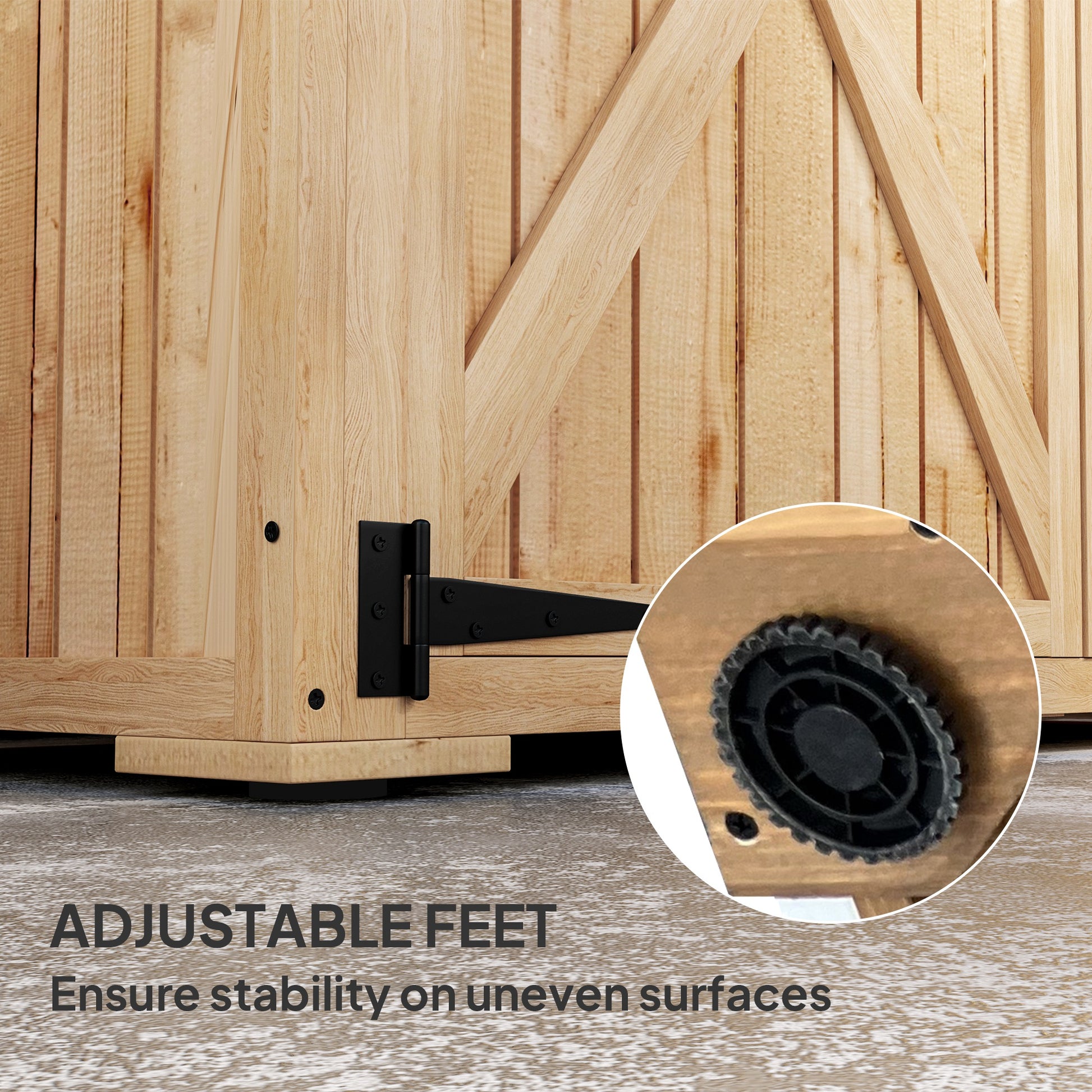 Wooden Garden Storage Shed, Tool Storage Cabinet with Asphalt Roof and 2 Shelves for Garden Tools, Equipment, Outdoor Tool Shed with Double Doors, Natural