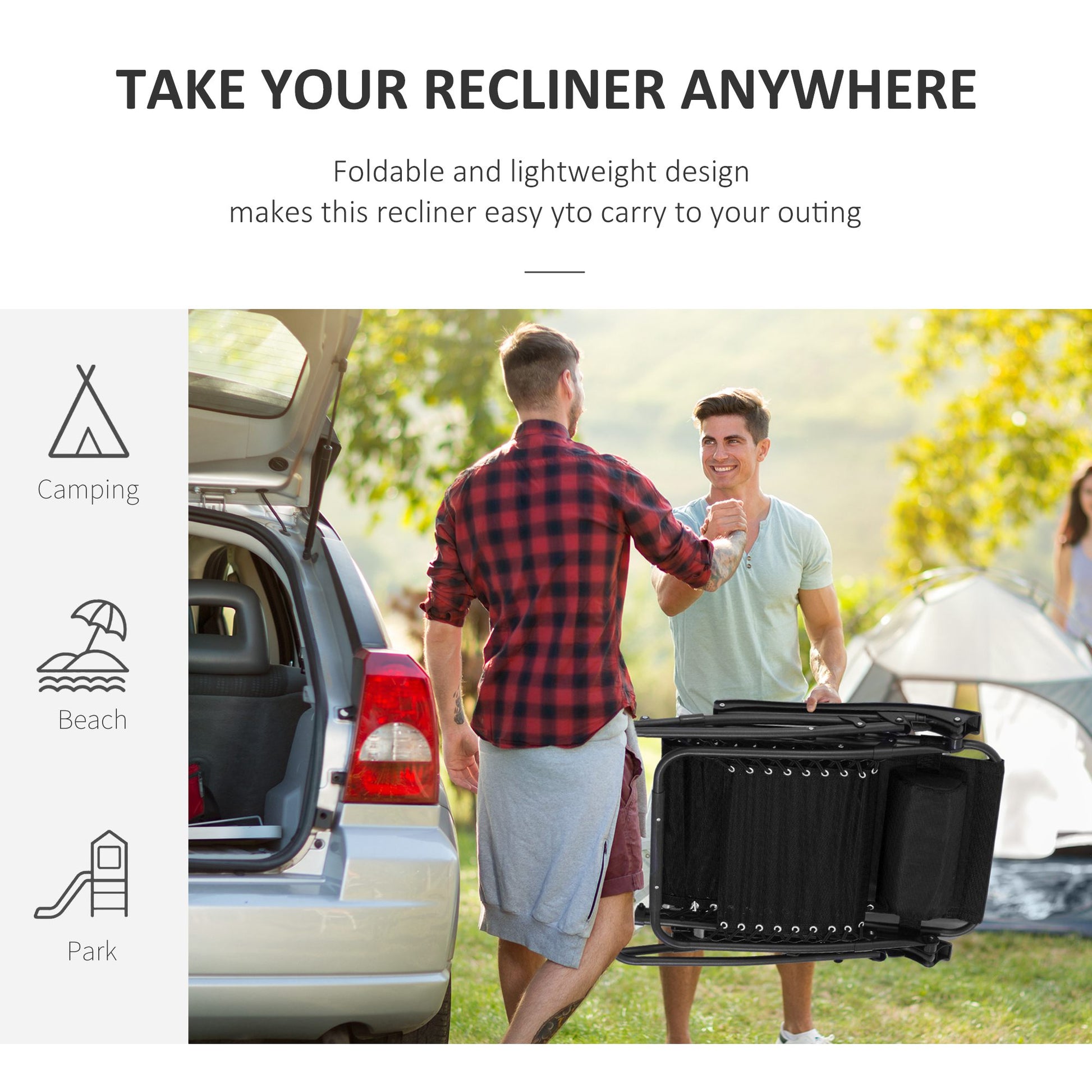 - STEEL FRAME: Core structure is strong and will support your body. Anti-peel and corrosion resistant. Foldable design of outdoor recliner chair for easy carrying and storage. COMFORTABLE: The outdoor recliner chair features a breathable texteline seat, pairs with the padded headrest and armrests, perfectly fit your body and gives you strong support.